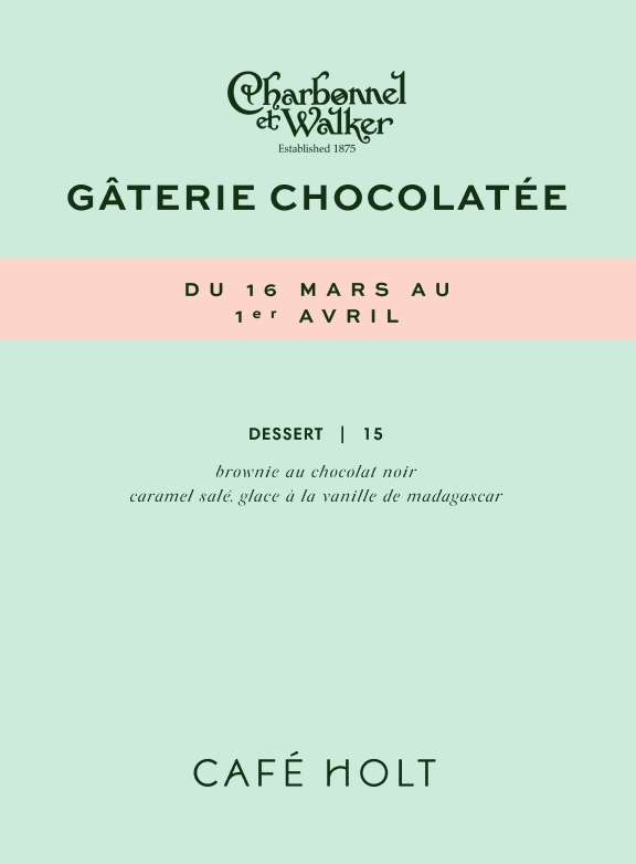 Celebrate Easter with luxury chocolate from Charbonnel et Walker, the iconic London chocolatier. Book your café reso today and discover our special feature crafted using their scrumptious chocolate Butler Bars!Célébrez Pâques avec le chocolat de luxe de Charbonnel et Walker, l'emblématique chocolatier londonien. Réservez dès aujourd'hui au Café et découvrez notre gâterie élaborée à partir de leur succulente tablette de chocolat Butler!